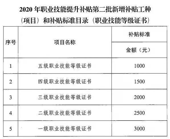 申请专项补贴:四级1500,三级2000,二级2500,一级3000