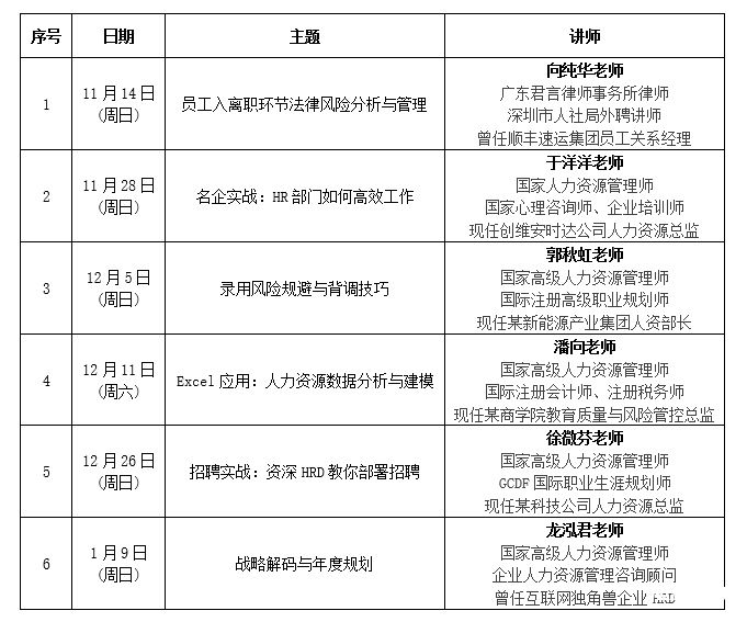 地点:深圳市南山高新园区(加微信szhrpx,课前群内通知)